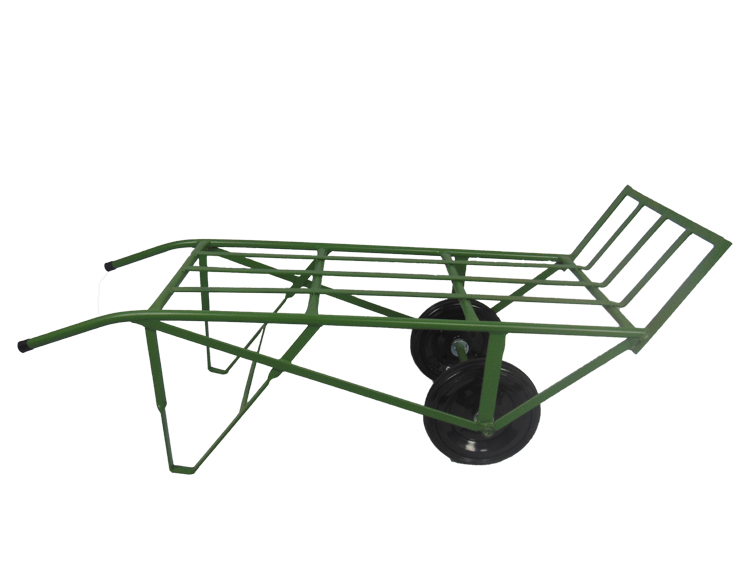 Carrinho tubular/armazém para sacaria, fabricado em aço carbono. Capacidade para 350 Kg. Equipado com 2 rodas pneumáticas (4 lonas), montadas no eixo.