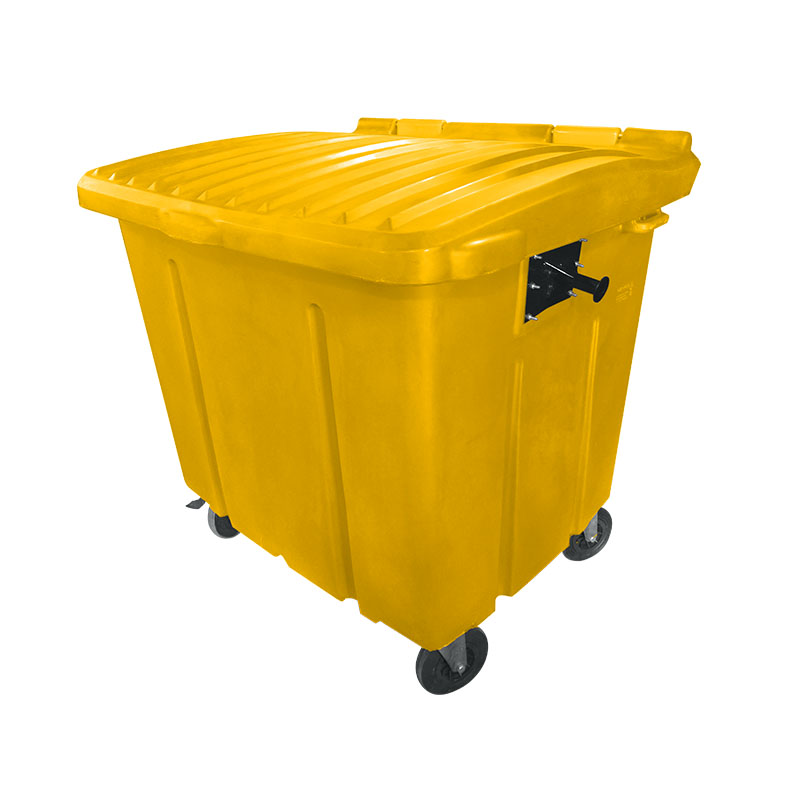 Container de Lixo ou Lixeira para Condomínios Amarelo de Plástico virgem, 1000 Litros