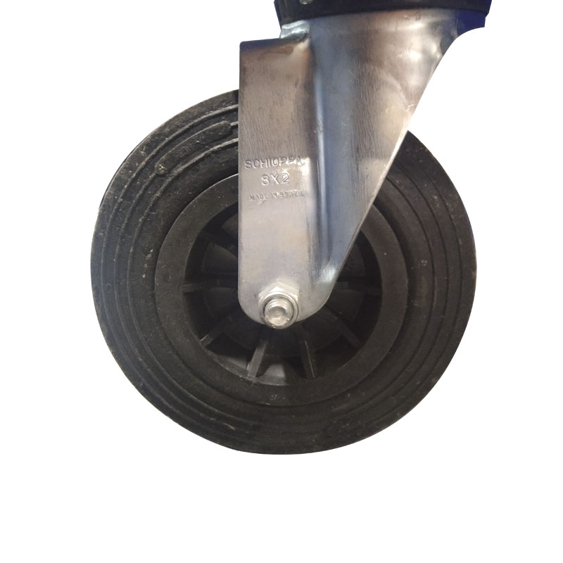 - Mobilidade: Equipado com 4 rodízios giratórios de 200mm em borracha maciça sendo, com núcleo de polipropileno e garfos de aço com tratamento anti-corrosão. Dois rodízios possuem freios de estacionamento. Rotação dos rodízios de 360º.