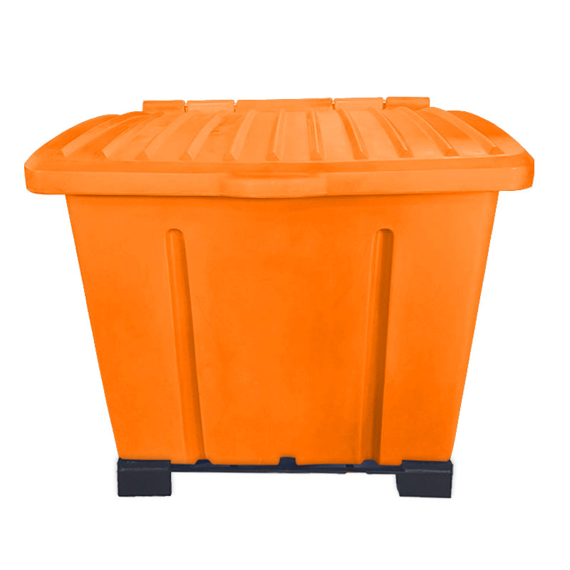 Container de Lixo ou Lixeira para Condomínios Laranja de Plástico com suporte fixar chão, 1000 Litros