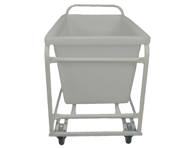 Carro/ Carrinho com cuba para 180 Litros. Fabricada em estrutura metálica com pintura eletrostática de alta resistência. A cuba é fabricada em polietileno de média densidade (PEMD). Possui puxador em tubo para facilitar movimentação. Capacidade para até 180 Litros. Equipado com rodízios de 4, sendo 2 fixos e 2 giratórios. Possui 90 cm de comprimento, 60 cm de largura e 75 cm de altura.