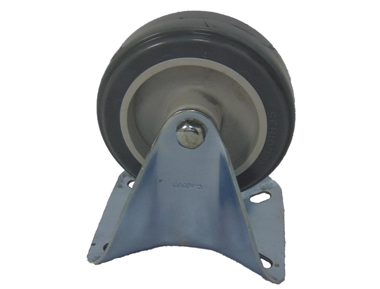 Rodizio fixo 4 (412) com roda BP. Capacidade de carga 80Kg. Com rolamento de esfera. Borracha cinza e não marca piso.